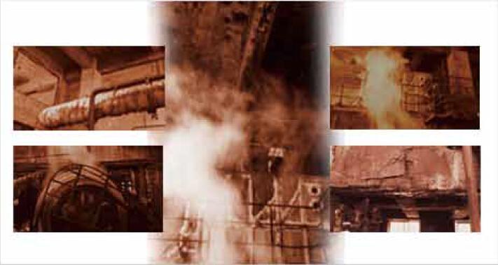建筑经受高温辐射,构件表层严重碳化。钢筋和砼弹性模量不同,膨胀变形界面错位,引起剪切应力下降,造成安全隐患。务必突破传统束缚、改变传力途径、微观划区分析、宏观体外补强、增设过渡措施。