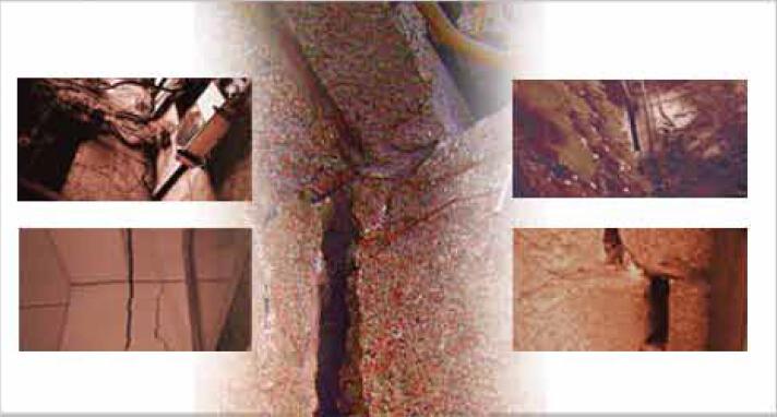 建筑处于碱性环境,频繁承受动荷载,促使结构表层腐蚀,强度疲劳破坏。
