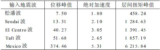 表4列出了抗震结构和隔震结构在双向地震波作用下各楼层的最大层间位移。从其中可以看出