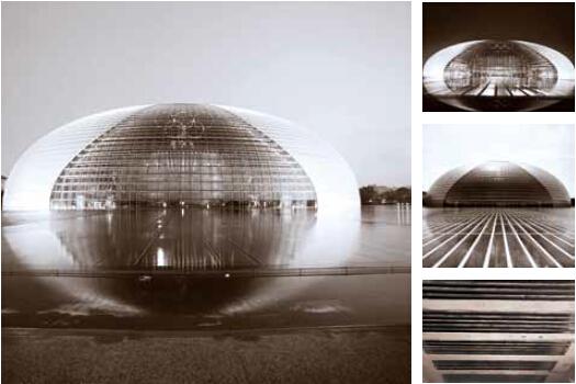 2004 年4 月,我公司承接国家大剧院改造加固工程。此次工程前期我们与清华大学土木工程实验室教授共同进行技术研究,发现该结构实际情况十分复杂。由于国家大剧院屋顶新加三条泄洪管道,新增管道后下部钢结构承受不了新增荷载,需要加固。而其钢结构自身抗压能力不够,不允许使用外焊钢板,只能采用0.113mm 厚的碳纤维。经过研究并且反复试验,我们对其工艺进行创新,将碳纤维分两方向交叉成45 度角斜拉粘贴,并对构件本身采用预张法使其处于预应力状态,这样碳纤维有效附合在钢结构上,并能满足加固要求。另外部分剪力墙增加洞口,也做了相应的加固补强工作。