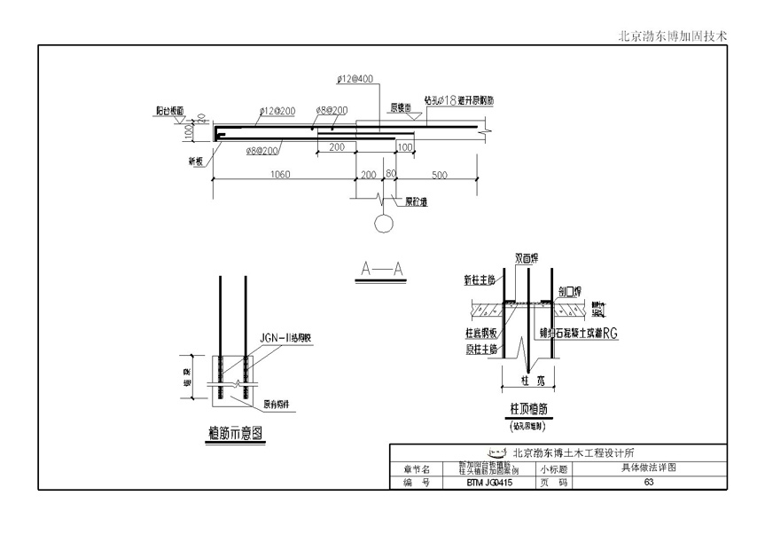 新加阳台板植筋,柱头植筋加固案例